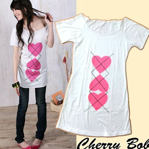 ラスト1点 ハート アーガイルチェック Tシャツ ざっくり ロング丈 Tワンピ